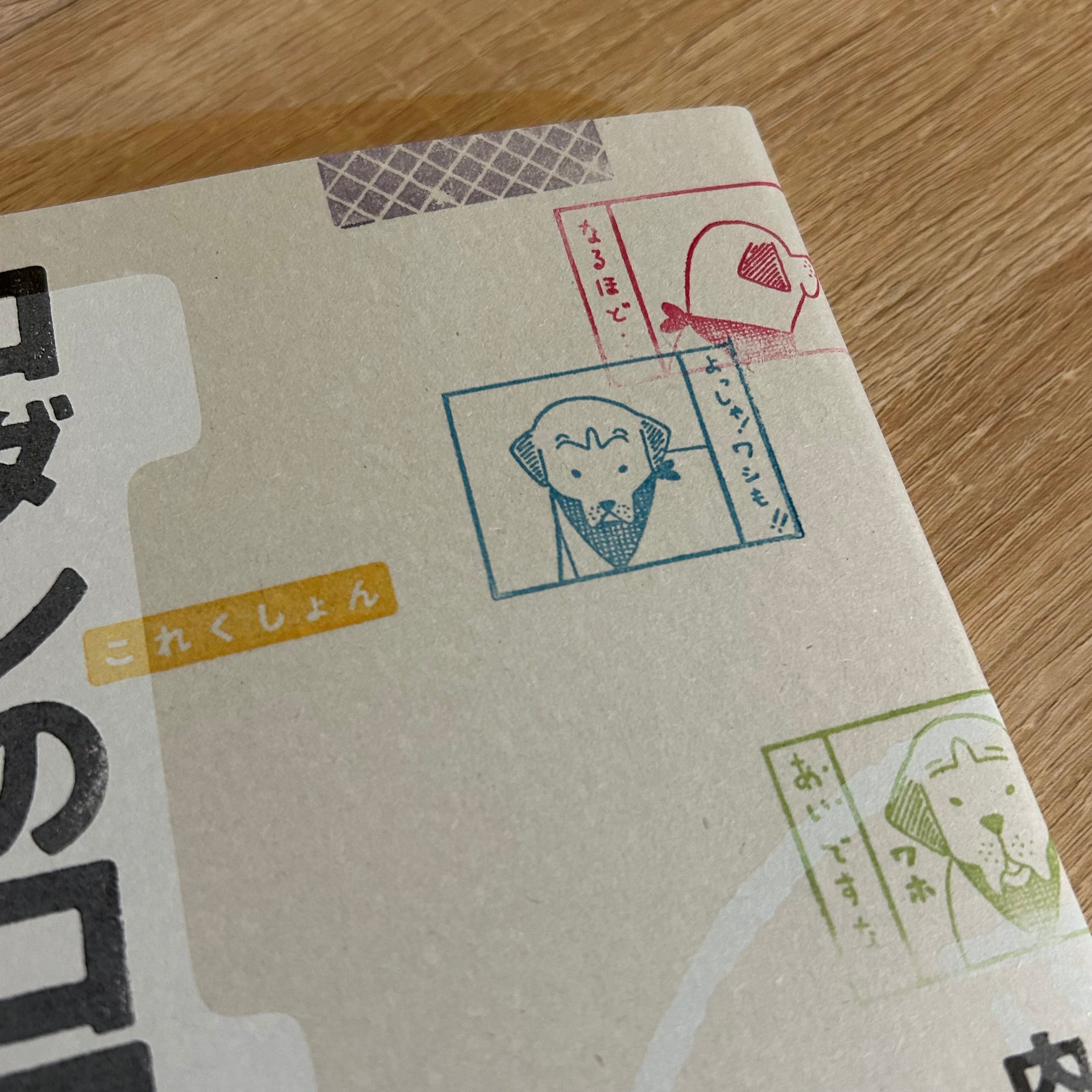 ロダンの絵柄やセリフ、タイトルや著者名までスタンプを押して作りました。